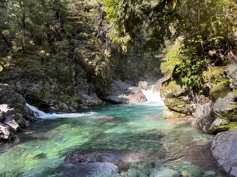 She doesn’t care how strong, how cunning you are. A thunderous roar echoes off the narrow walls carved deep into the gorge. Sparks and flashes of water transformed to mist fly through the sky. A place few choose to venture, a hundred or so feet below, a waterfall cascades into a perfect clear blue pool of water. A tumultuous current swirls, in stark contrast to the still, ancient cliffs, fungi covered trees and bearded moss hanging off the ferns. A deep breath to fill my chest, oh the feeling of being alive!